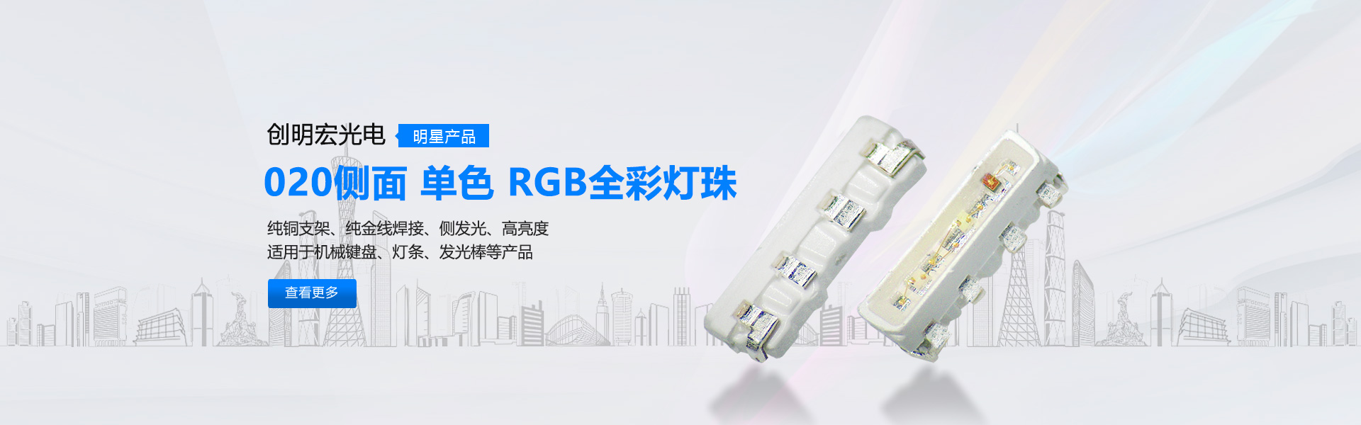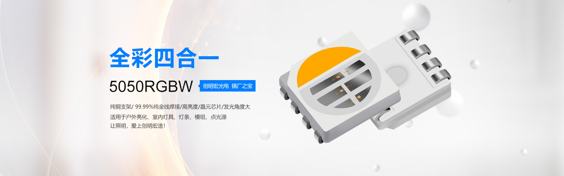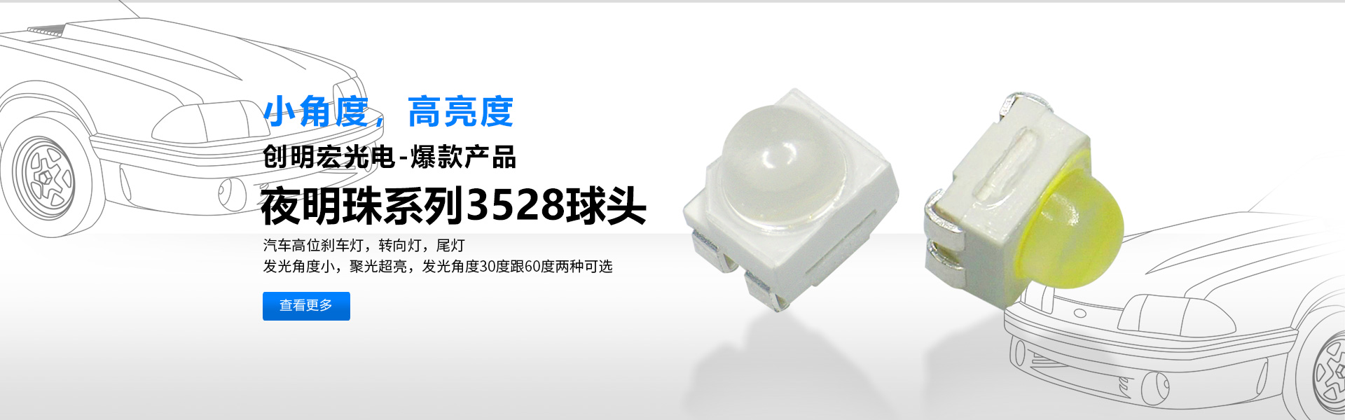 公司率先开发适用于汽车专用光源3528凸头“夜明珠系列”(30-60度)以及替代传统插件灯珠,0603、0805、1206凸头系列,彻底解决贴片灯珠发光角度大,亮度低等缺陷。针对户外亮化开发出“防水”系列5050RGB,3535RGB和白光。